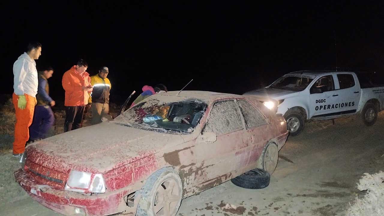 El auto del matrimonio se había encajado por el barro producto del temporal y ellos se resguardaron en un viejo puesto cercano. En el momento, se procedió a evacuarlos al puesto sanitario de Cerro Cóndor. El operativo finalizó cerca de las 00 h.#