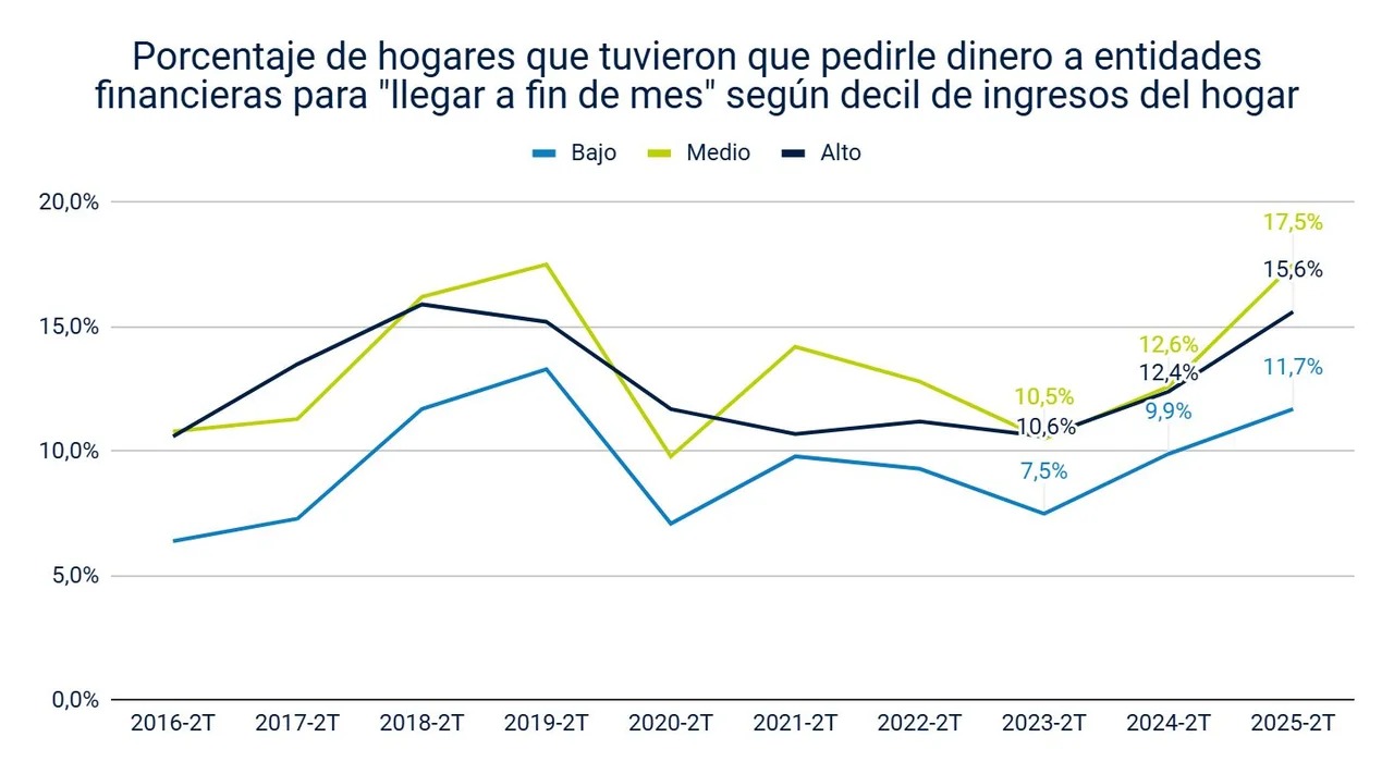 Deuda con Bancos: El 18% de los hogares de ingresos medios se endeudó con entidades financieras, superando al 12% de los sectores bajos.
