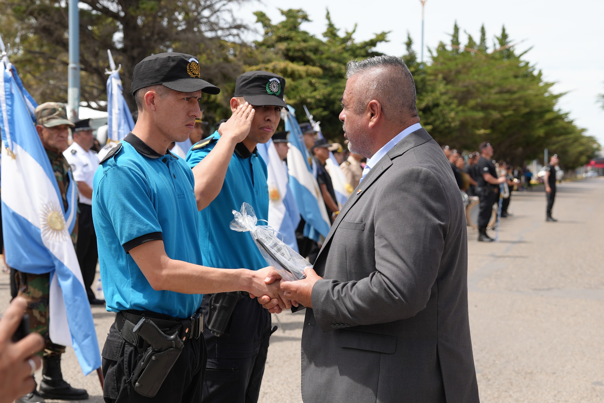 En representación del gobernador Ignacio "Nacho" Torres, el ministro de Seguridad y Justicia del Gobierno del Chubut, Héctor Iturrioz; junto al jefe de la Policía del Chubut, Andrés García; y el subjefe de la fuerza, Mauricio Zabala encabezaron este domingo el acto por el 68° aniversario de la Policía del Chubut en Comodoro Rivadavia.