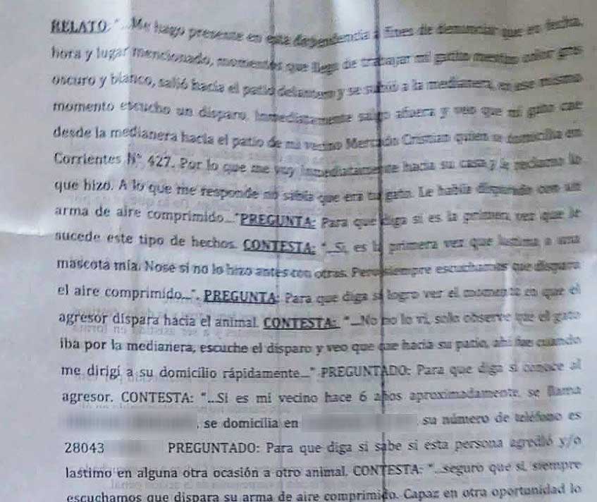 Ya hice la respectiva denuncia, sea mi gato o el de quien sea no puede hacer eso, también le podría haber pegado a una criatura.