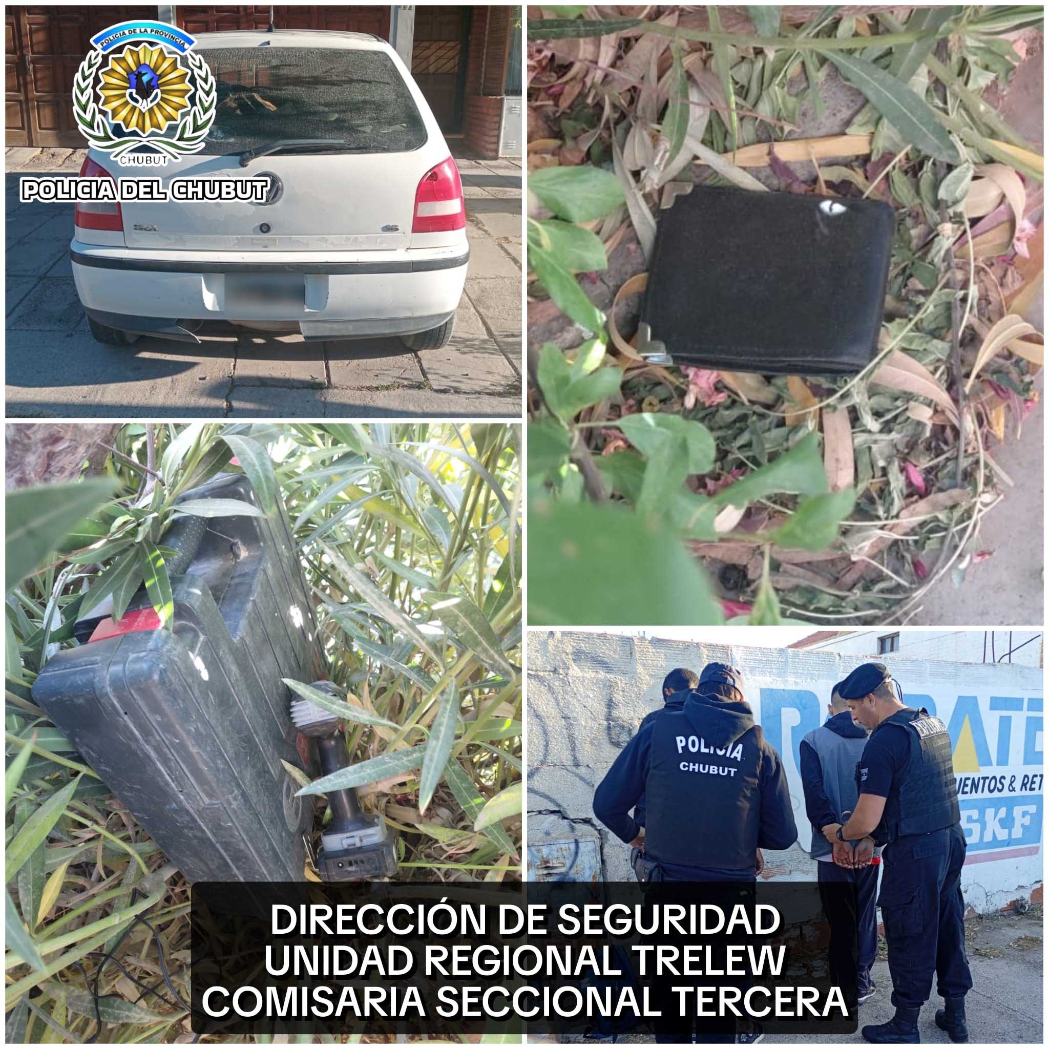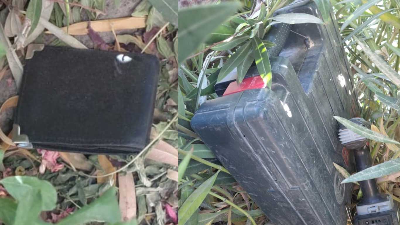 Al momento de la detención, los malandras descartaron una caja con un taladro, y una billetera de color marrón, con documentación.#