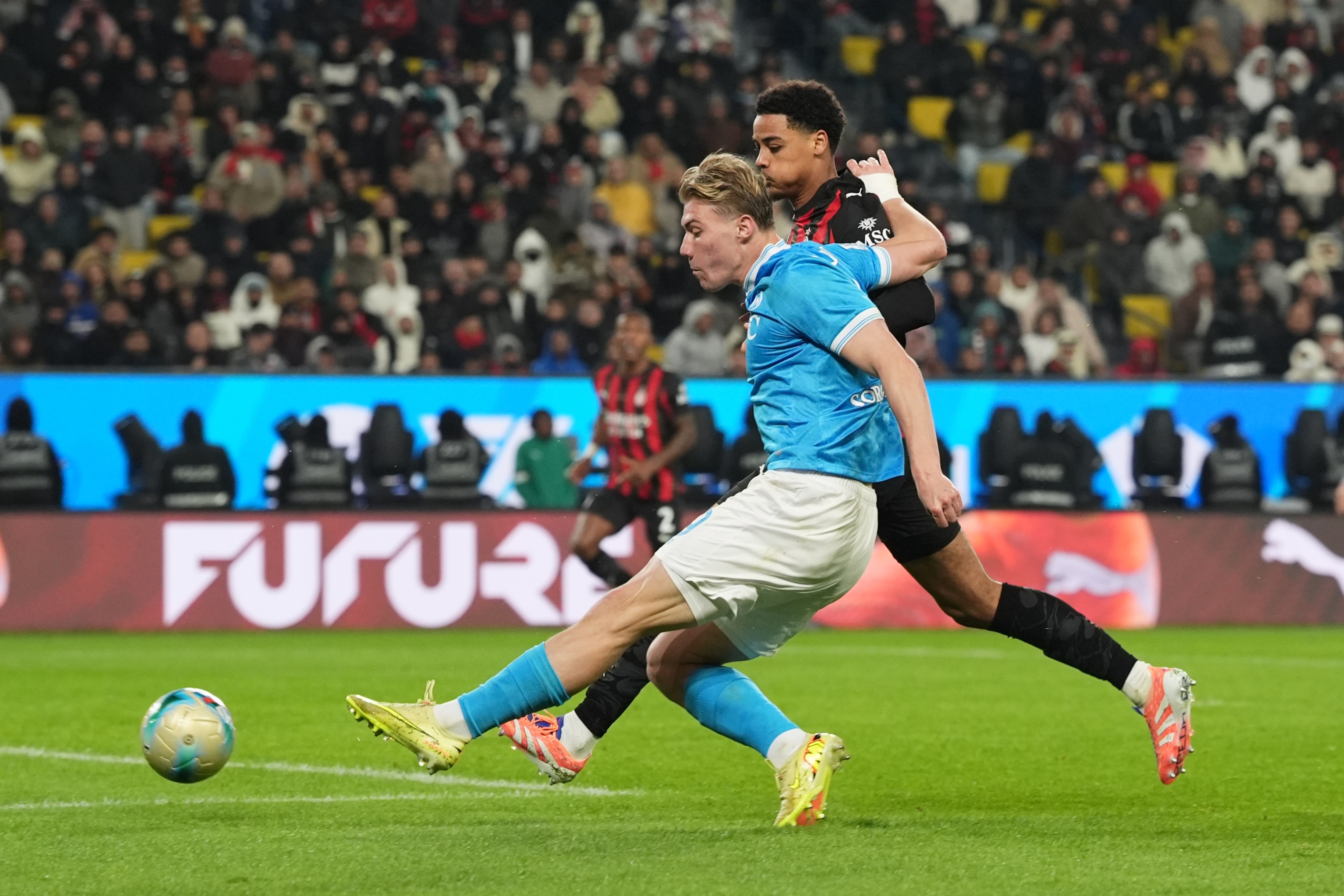 Nápoli selló su clasificación a la final de la Supercopa Italiana tras vencer con autoridad al Milan por 2-0 en la semifinal disputada en Riad.