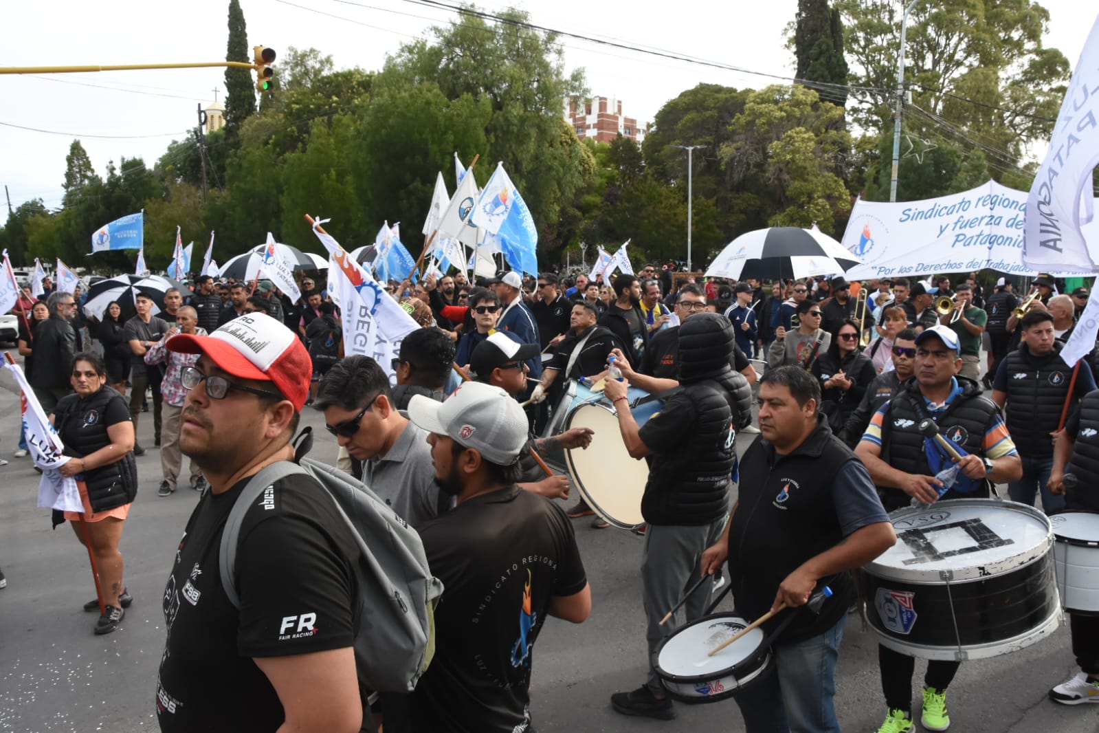 Luego del acto y de las palabras del referente de la CGT, los manifestantes que ocuparon dos cuadras, marcharon por las calles del centro de la ciudad de Trelew.