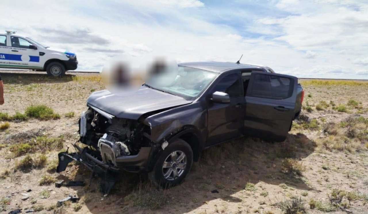 Como consecuencia del choque, la camioneta terminó sobre la banquina, con su frente con daños visibles en el tren delantero.