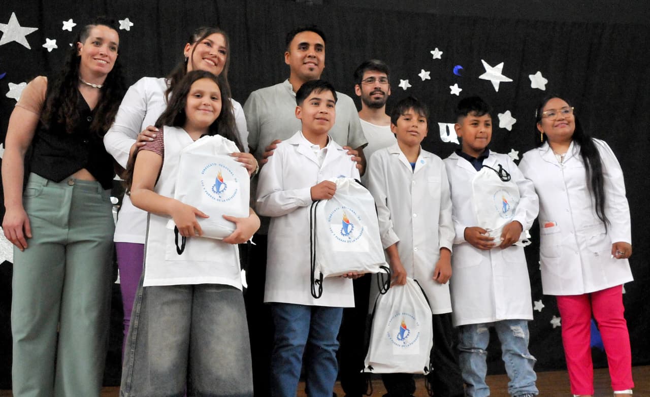 Durante la emotiva ceremonia, realizada el viernes, el Sindicato hizo entrega de 80 medallas a los egresados y 95 kits escolares, reconociendo el esfuerzo y la trayectoria educativa de los alumnos. En total, fueron 80 los estudiantes egresados y 14 los alumnos destacados, quienes serán portadores de las Banderas durante el ciclo lectivo 2026.