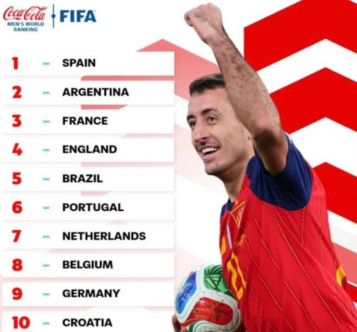 La Federación Internacional de Fútbol Asociado (FIFA) publicó la última actualización del ranking de selecciones que lidera la selección de España y que tiene como escolta a la Argentina.