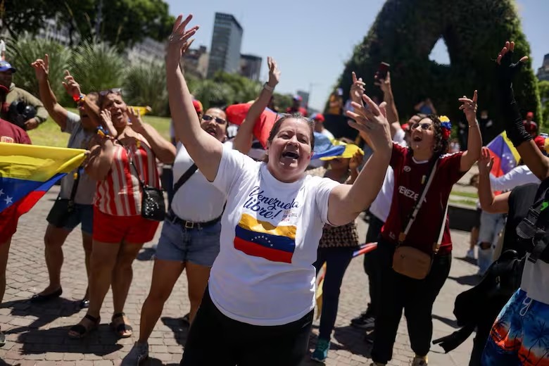 “Llevo seis años esperando este momento para poder volver a abrazar a mi madre”,relató entre lágrimas uno de los manifestantes. Mientras losautos que circulan por la Avenida 9 de Julio acompañan con bocinazos, en la Plaza de la República se escuchan los acordes del himno nacional venezolano y gritos de apoyo a la operación de Estados Unidos.