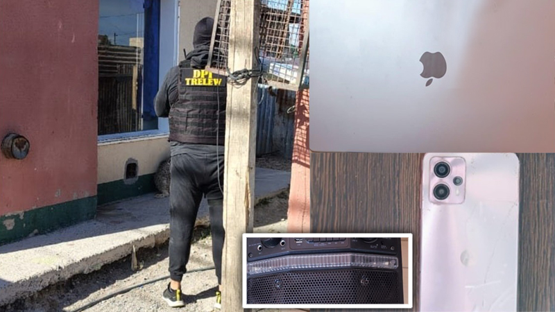 Ayer cerca de las siendo las 17:30 horas se realizó una diligencia de allanamiento en el domicilio sito en calle Madre Teresa de Calcuta y tras realizar el registro del inmueble, se procedió al formal secuestro un parlante inalámbrico que había sido robado en un domicilio en la zona de chacras de Trelew. Asimismo, se secuestró un teléfono celular del sujeto investigado con el cual utiliza la aplicación Whatsapp para vender los elementos sustraídos.