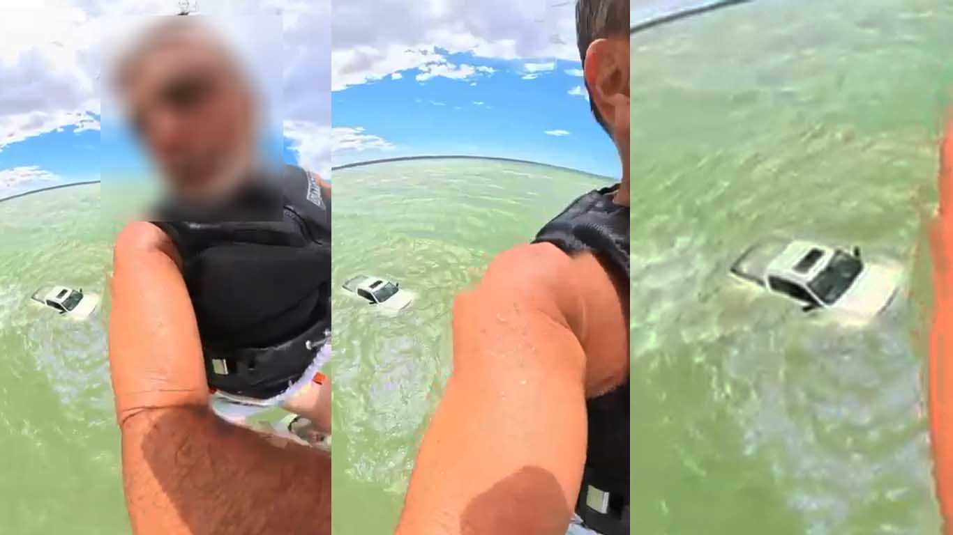 Ahora apareció un video donde se ve a un deportista de kitesurf esquivando por poco a la RAM semisumergida en la marea.