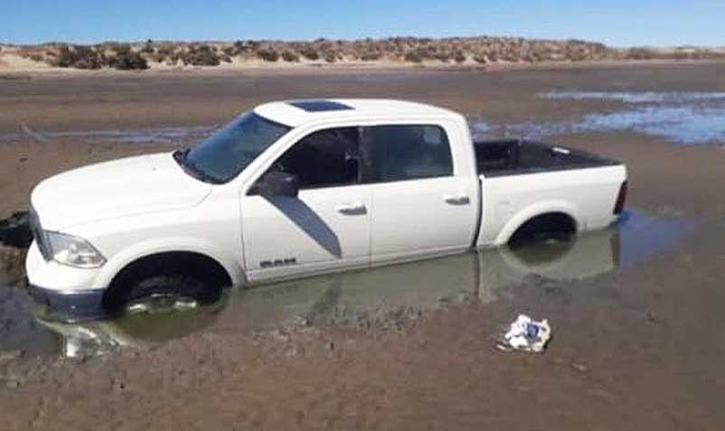 Una Dodge RAM que se encuentra encajada en arenales del Riacho San José en Península Valdés, llamó la atención de turistas y lugareños, ya que la imponente camioneta se encuentra en ese lugar desde hace más de una semana, según testigos.