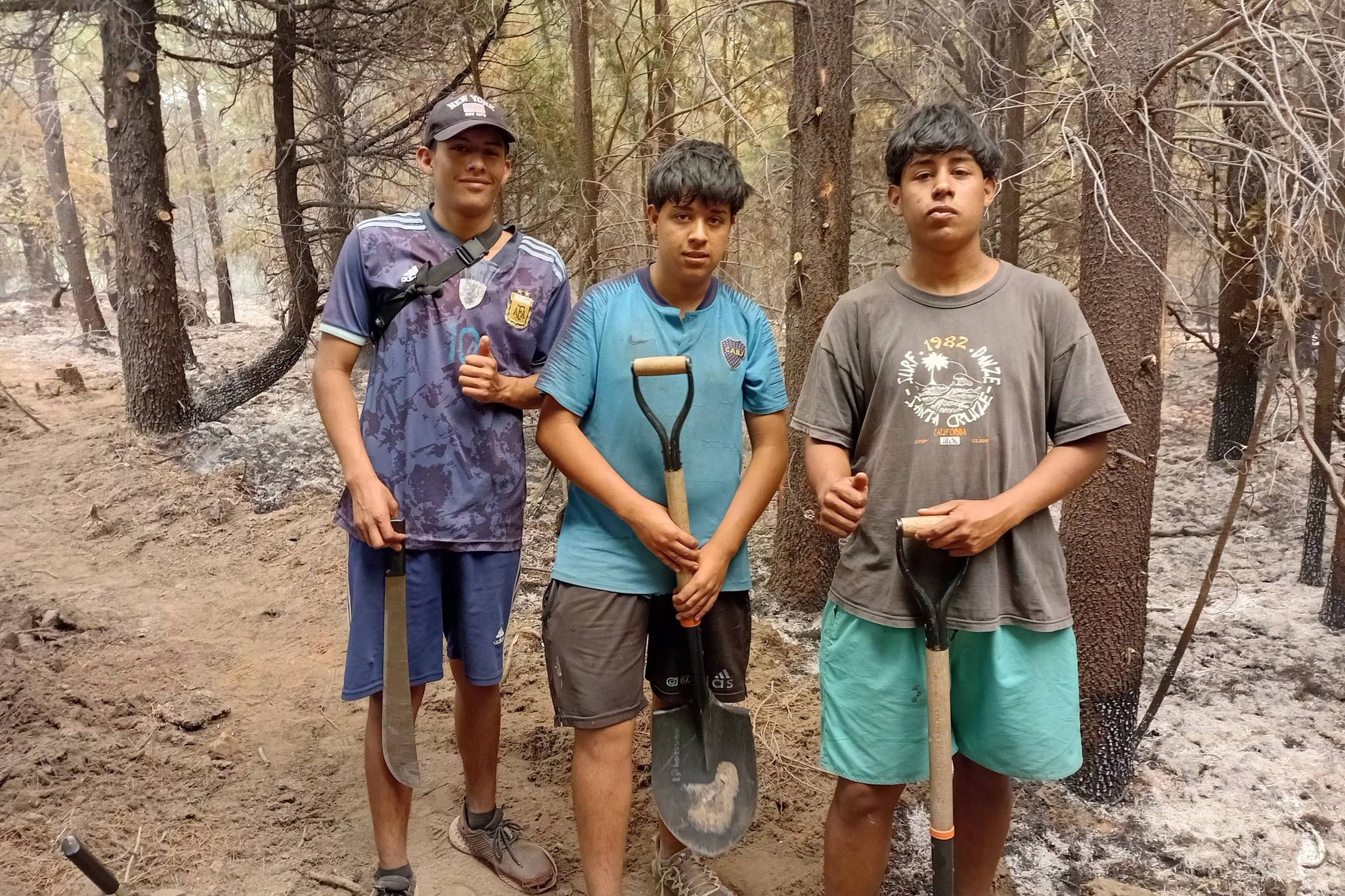 Este miércoles por la mañana, los hermanos Germán (17), Nawel (16) y Gonzalo Calfuqueo(15) se sumaron de manera voluntaria a las tareas para combatir el incendio forestal que desde el lunes afecta la zona de Puerto Patriada. Acompañados por su padre, los adolescentes cruzaron en lancha el Lago Epuyén para colaborar directamente en el operativo.