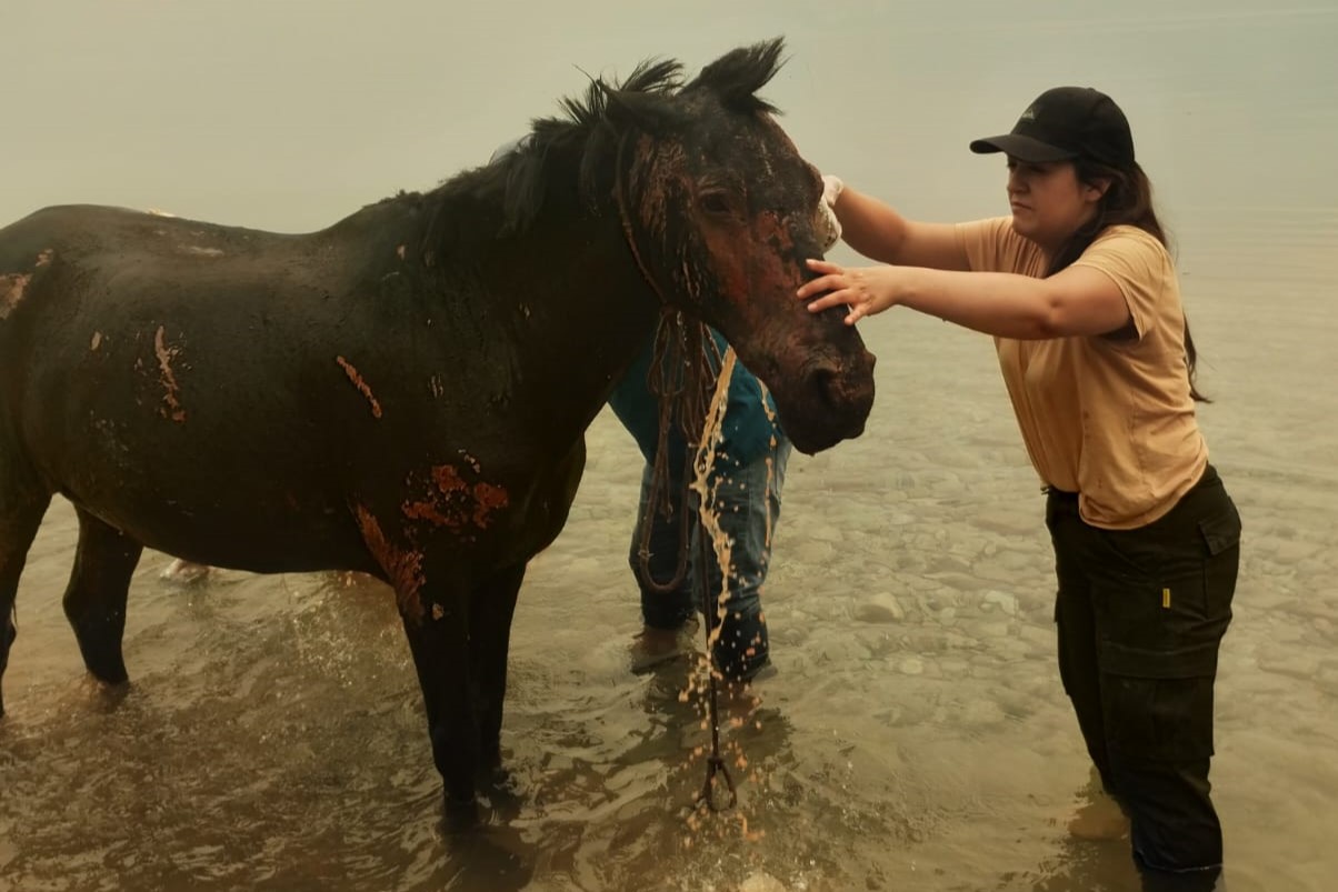 No pudo contener la emoción al describir lo que vio en el terreno: “Nos encontramos con un panorama muy triste. En zonas donde hay muchas familias, los caballos son animales de trabajo y de compañía. Había muchos caballos y la mayoría han muerto quemados. Esa es la realidad”.