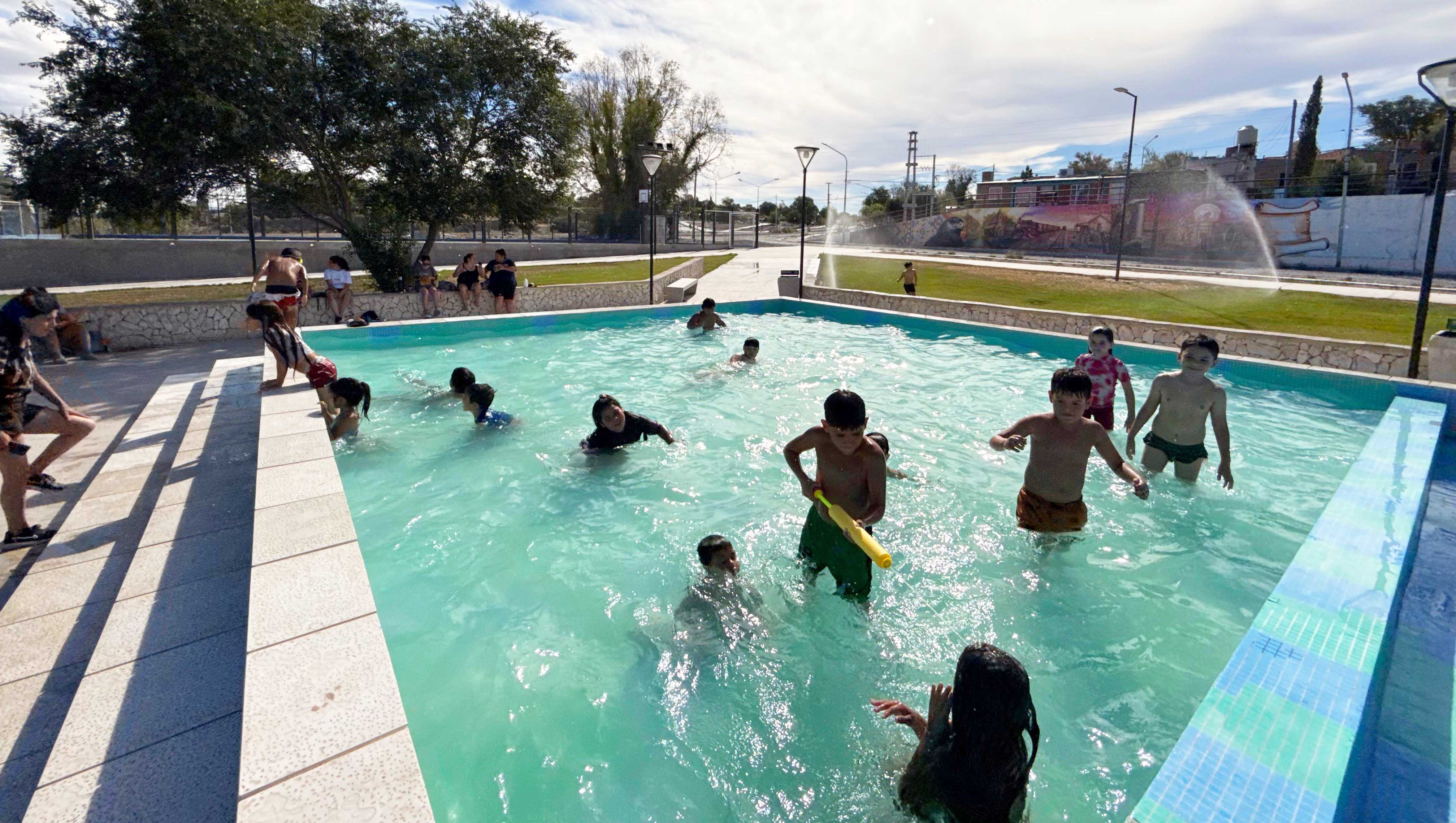 Entre las incorporaciones de este año se destaca la habilitación de un espacio exclusivo para niños y niñas menores de cinco años, ubicado en la pileta de la Plaza Centenario, especialmente diseñado para que los más pequeños puedan disfrutar en un entorno cuidado, con agua segura y potable.