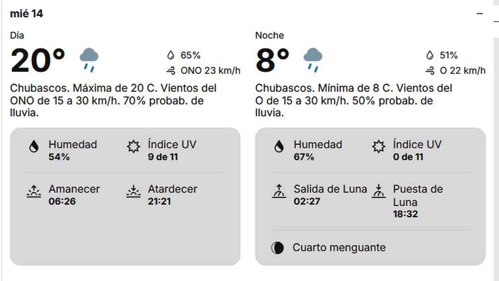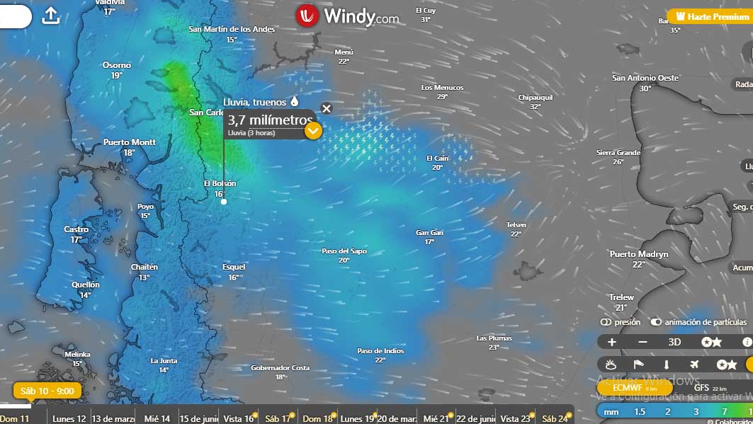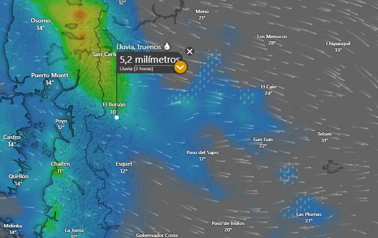 El pronóstico de Windy, alerta de lluvias, no muy copiosas, pero que ayudarían en la tarea de los brigadistas para controlar las llamas que ya consumieron miles de hectáreas, viviendas, vehículos y animales de granja.