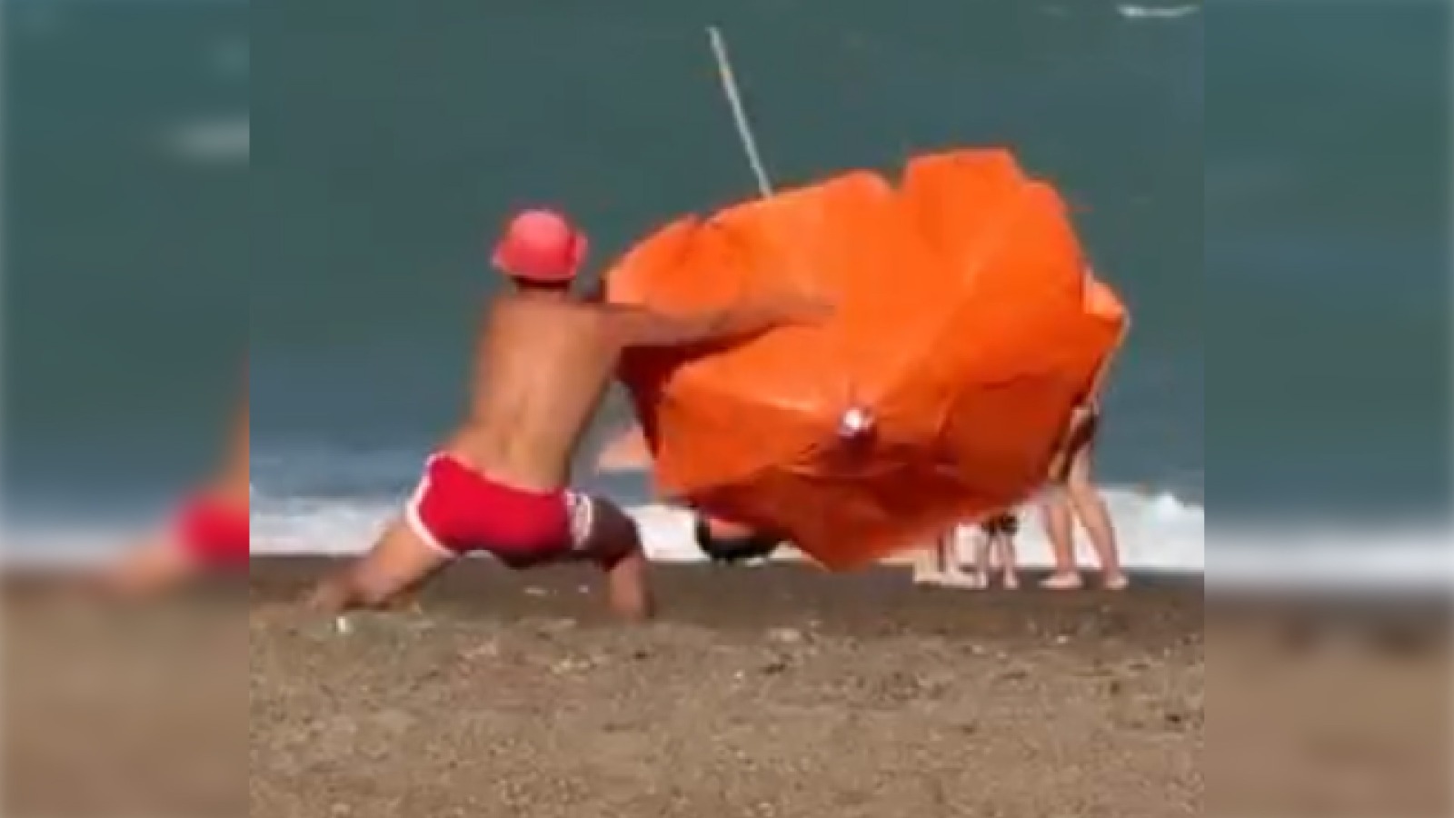 La tarde de este martes, tras un cambio repentino de viento, una sombrilla salió volando en Playa Unión. Pero gracias a la rápida intervención del guardavidas Mauro Triviño, la situación fue controlada de inmediato y no pasó a mayores.