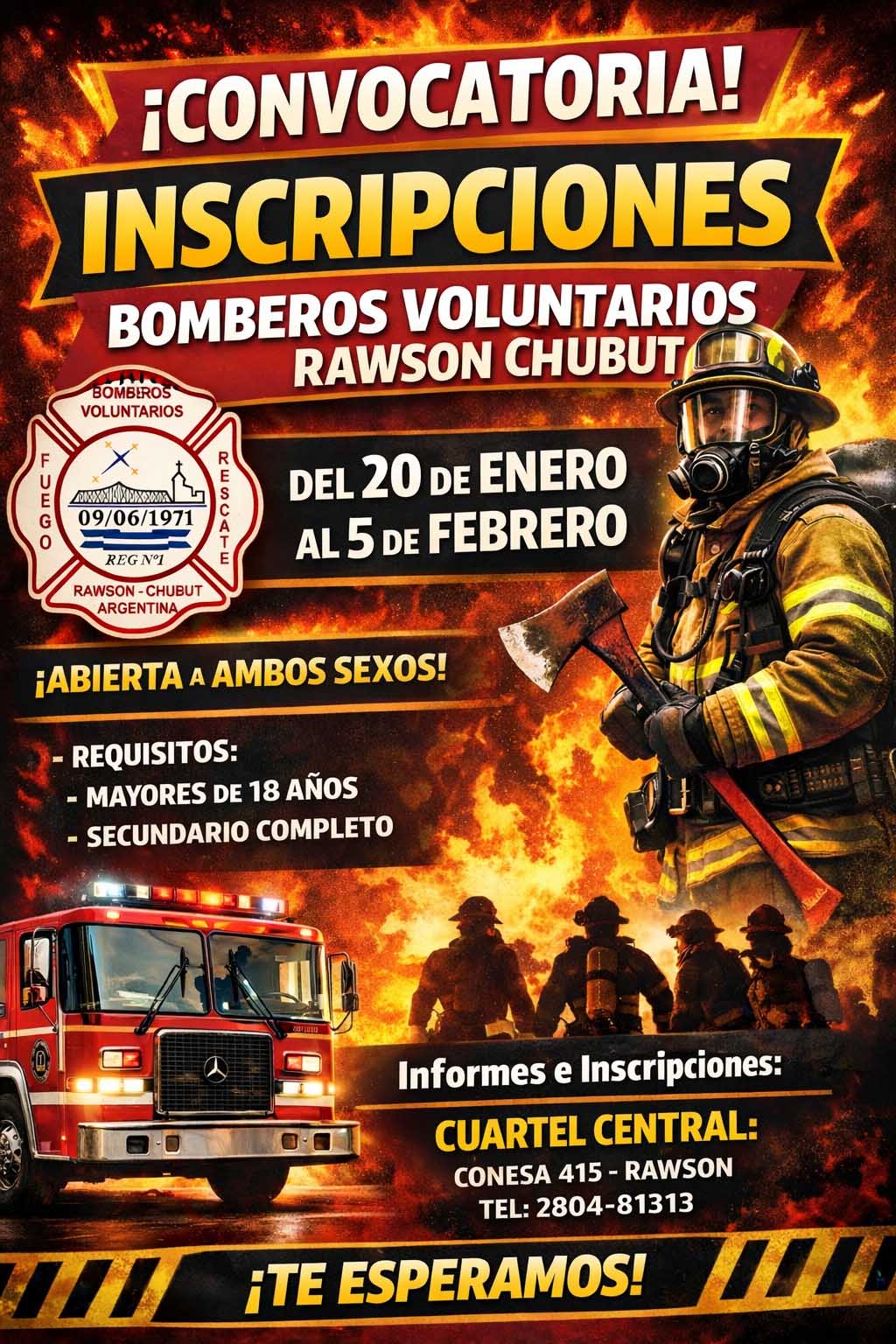 El Cuartel de Bomberos de Rawson abrió sus inscripciones para sumar nuevos voluntarios en esta institución.