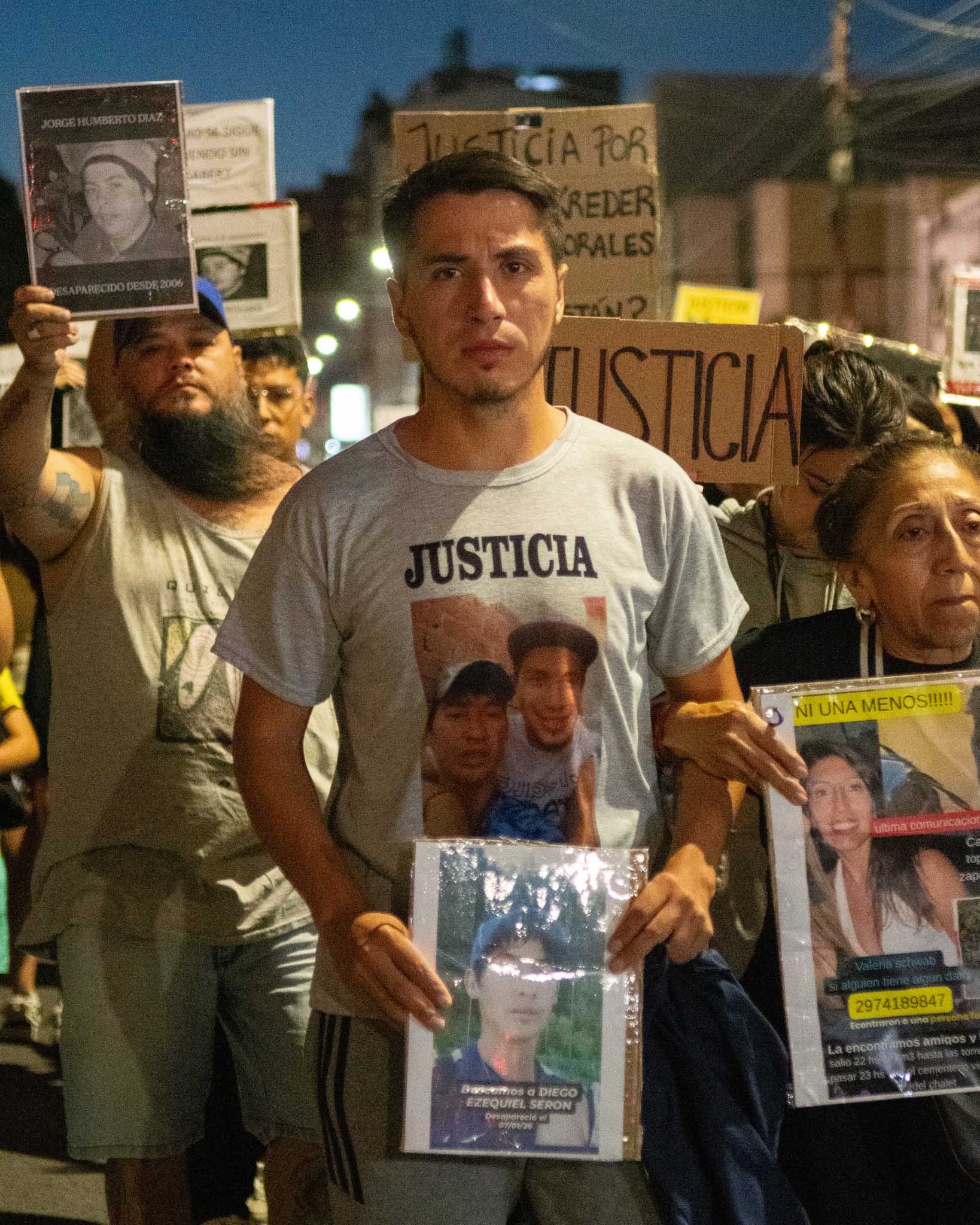Aunque estuvo convocada por los familiares de la joven asesinada y de Diego Ezequiel Serón, hallado sin vida, tras una intensa búsqueda de días, se sumaron al reclamo casos como el de Juana Inés Morales y Pedro Alberto Kreder, los jubilados perdidos desde octubre pasado y de otras tantas desapariciones sin resolución.