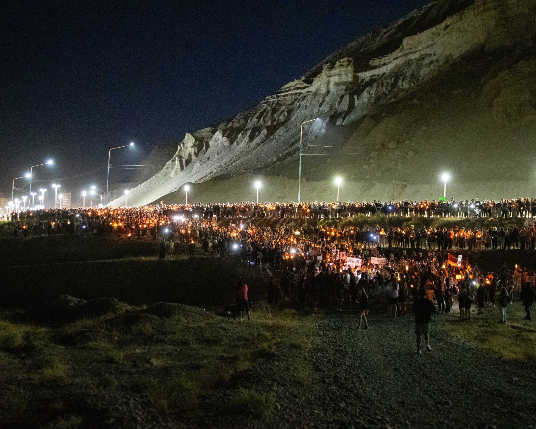 El martes por la noche, más de 3.500 personas se movilizaron por el Centro de Comodoro Rivadavia hasta el Cenotafio, a la vera de la Ruta 3, donde una semana atrás aparecía muerta Valeria Schwab en reclamo de justicia.