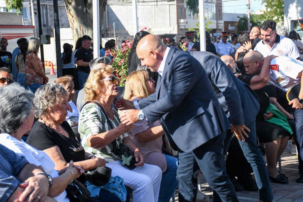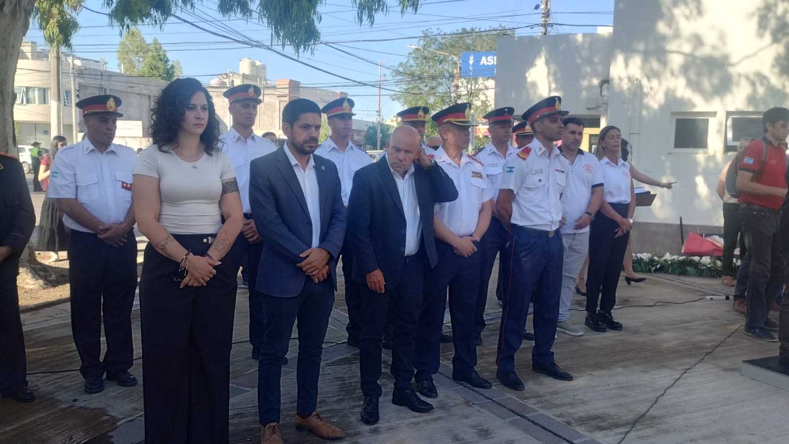 La ceremonia se realizó en la plaza San Martín, al pie del monumento a los bomberos. Allí se concretó una formación de honor, donde estuvieron presentes los padres y familiares de los bomberos, además de las autoridades de la asociación, así como el intendente Gustavo Sastre, funcionarios, entre otros.