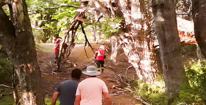 Tal como se indicó, se trata de un trabajo a contrarreloj que muestra el riesgo y la destreza de los equipos de emergencia que se abren paso con motosierra por el bosque.