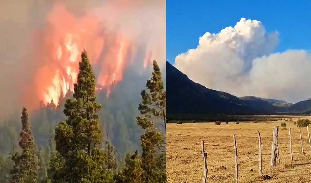 Los incendios, que se concentran en el Parque Nacional Los Alerces, además de devorar cientos de hectáreas de bosques nativos, ahora pone en riesgo las viviendas de viejos pobladores de la zona.
