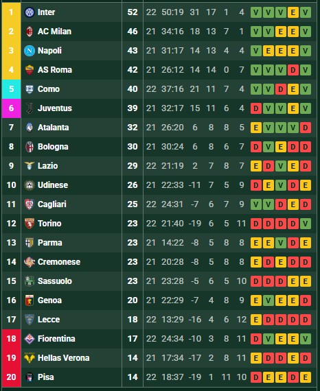 Con este contundente triunfo, el Como dio un paso clave en su objetivo de clasificar a competencias internacionales la próxima temporada ya que se afianzó en la quinta posición con 40 puntos, mientras que Torino sufrió un duro golpe que lo hizo perder terreno en la zona media de la clasificación (está 12mo con 23 unidades).