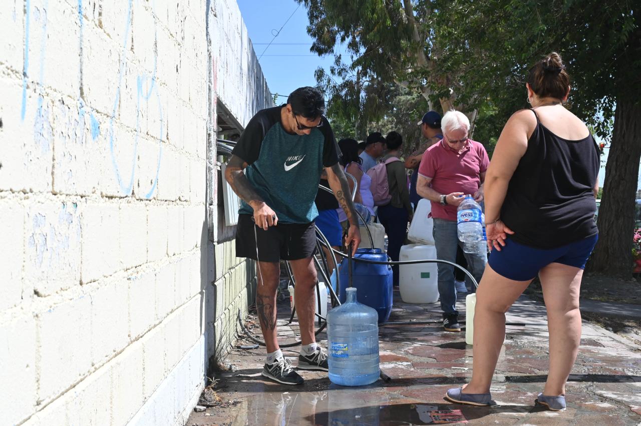 Con carretillas, changuitos, carros de bebés, las personas se las ingenian para llegar hasta Fontana y Colombia para cargar recipientes como baldes, bidones, conservadoras incluso botellas, todo suma a la hora de llevar agua a los domicilios.