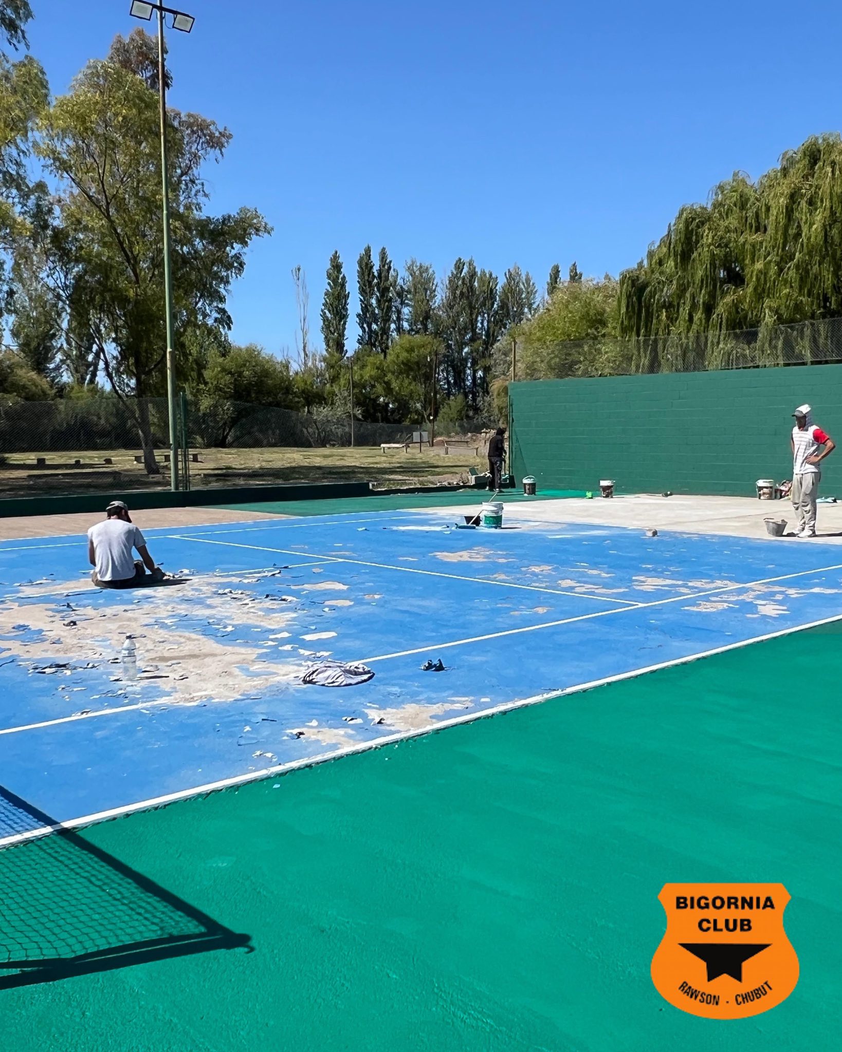 Continuando con las mejoras, también se está llevando a cabo la restauración y pintura de la cancha Nº 2 de tenis.
