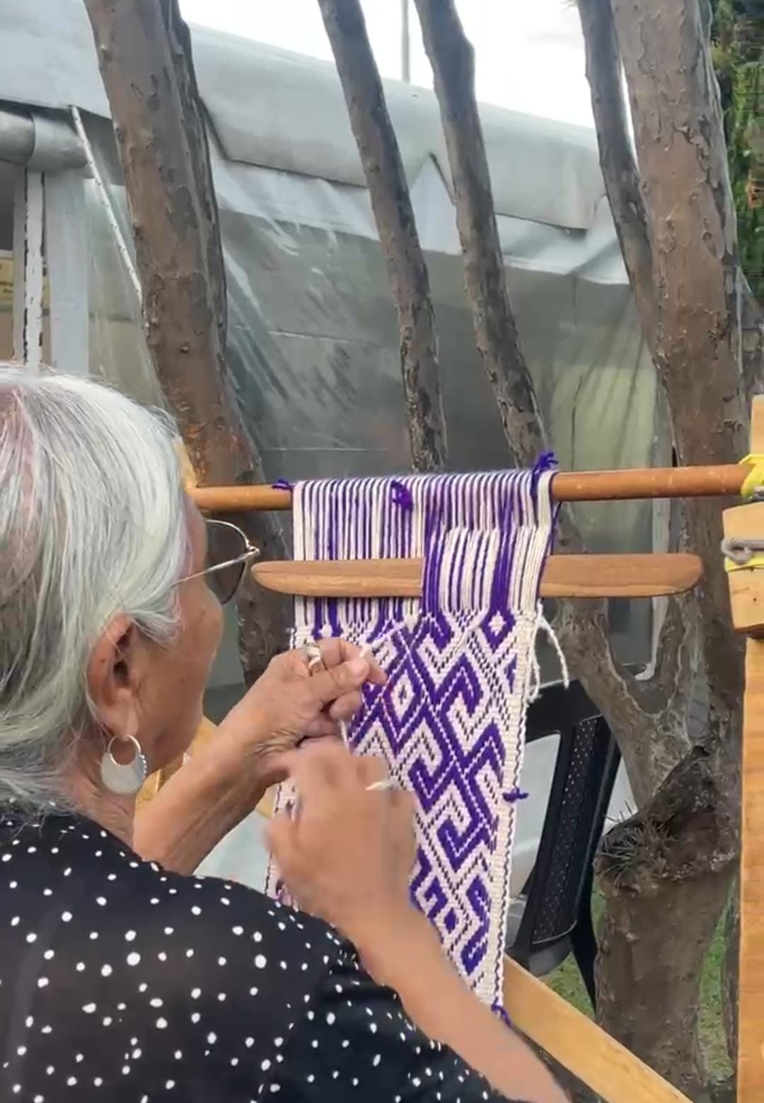 Con 85 años, Doña Ermelinda Painequeo, está presente en la Feria Nacional de Artesanías Augusto Raúl Cortázar, de Cosquín Córdoba, tal como lo hace desde hace 30 años, en los que ha participado mostrando las producciones de su telar Mapuche.
