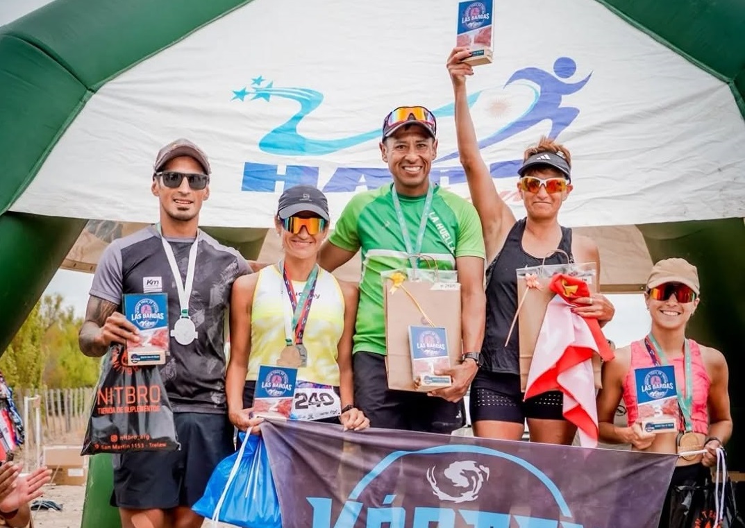 El madrynense Sebastián Araya y la comodorense Rosana Calderero resultaron este domingo los lógicos vencedores del Desafío Las Bardas 2026 en la distancia principal de 24 kilómetros en un variado y exigente circuito de trail en los alredores del autódromo "Mar y Valle" que organizó Eventos Deportivos Trelew.