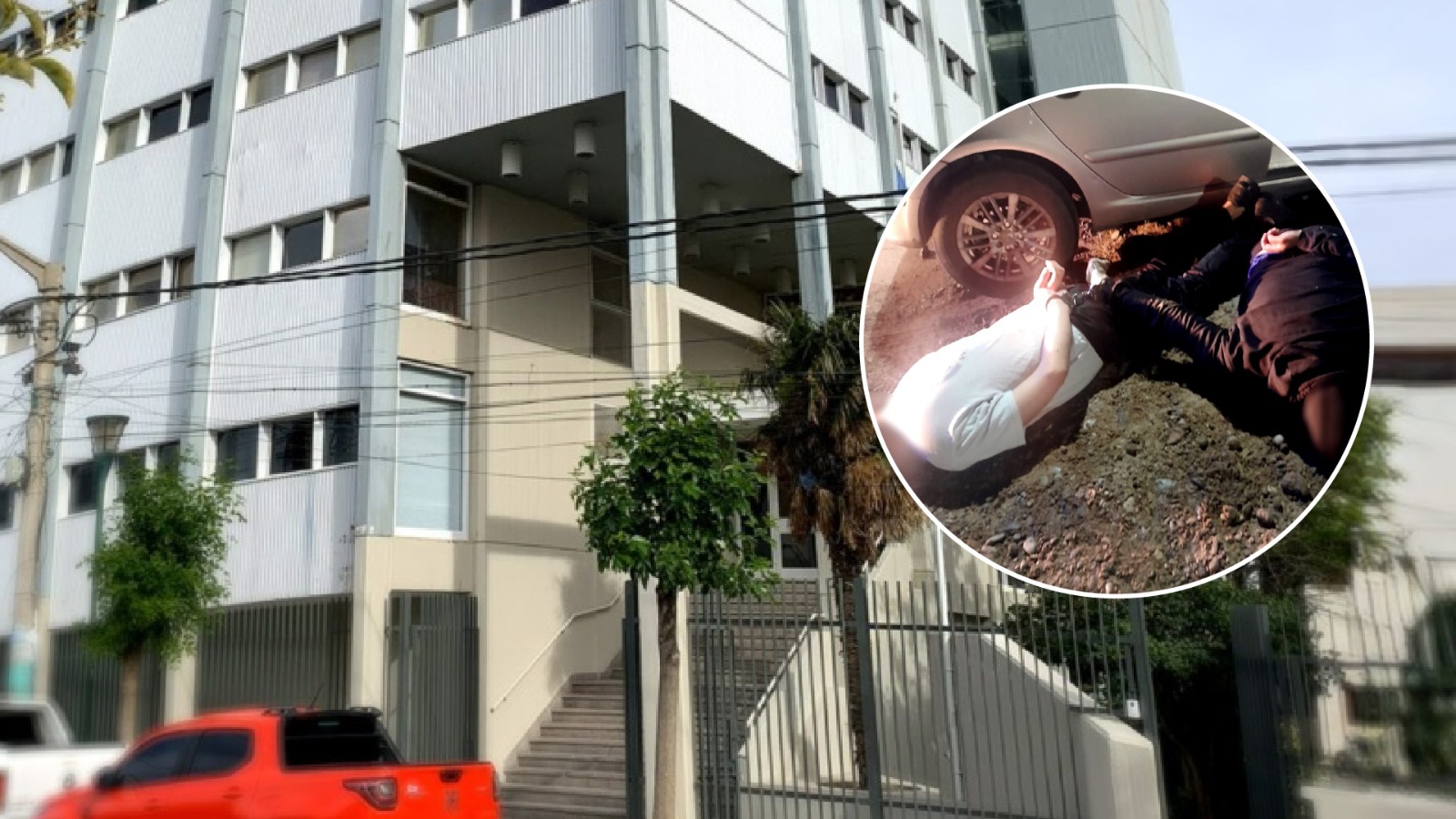 Al llegar al lugar la policía logró detener en el interior del local comercial a uno de los acusados -Matías Mundín- mientras que un vehículo se dio a la fuga y se inició una persecución que terminó en la captura de los otros tres sujetos. Durante la huida, Samuel Gómez descendió del rodado y logró escapar a pie, arrojando una mochila que contenía dinero en efectivo. En tanto que en automóvil, la policía identificó a Franco Bobadilla como conductor y a Juan Gutiérrez, quien se encontraba con guantes y el rostro cubierto.