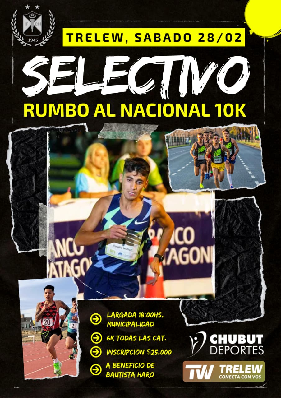 La Federación Chubutense de Atletismo anunció que el Selectivo para la Corrida de Cipolletti, prevista el 7 de marzo a las 21.30 y establecida como la primera fecha del Grand Prix Nacional de Ruta, se realizará una semana antes, el sábado 28 de febrero, en Trelew.