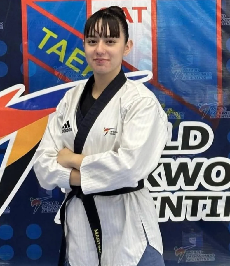 En su dojang de Puerto Madryn, Martina trabaja bajo la guía de su entrenador Rubén Guagliarello. Las prácticas se enfocan en técnica, velocidad y resistencia. El objetivo es sostener el ritmo competitivo de cara a las próximas convocatorias.