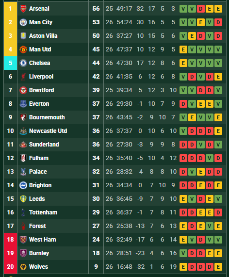 Con este resultado, Aston Villa se mantiene en la tercera posición con 50 puntos, a seis del líder Arsenal que este jueves enfrentará al Brentford en el Gtech Community Stadium.
