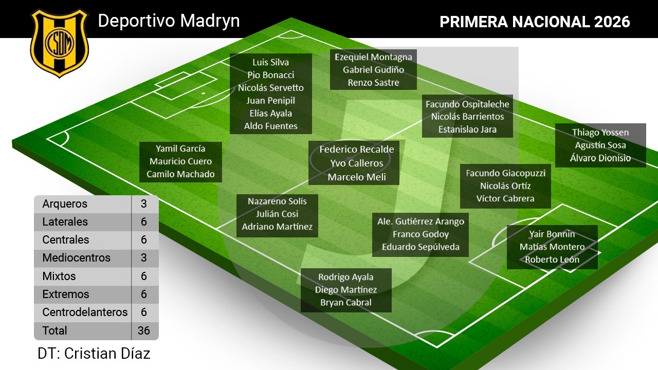 Madryn arma un plantel competitivo, con pretensiones claras y variantes en todas las líneas. La base se sostuvo y sumó nombres de experiencia para dar un salto de calidad.