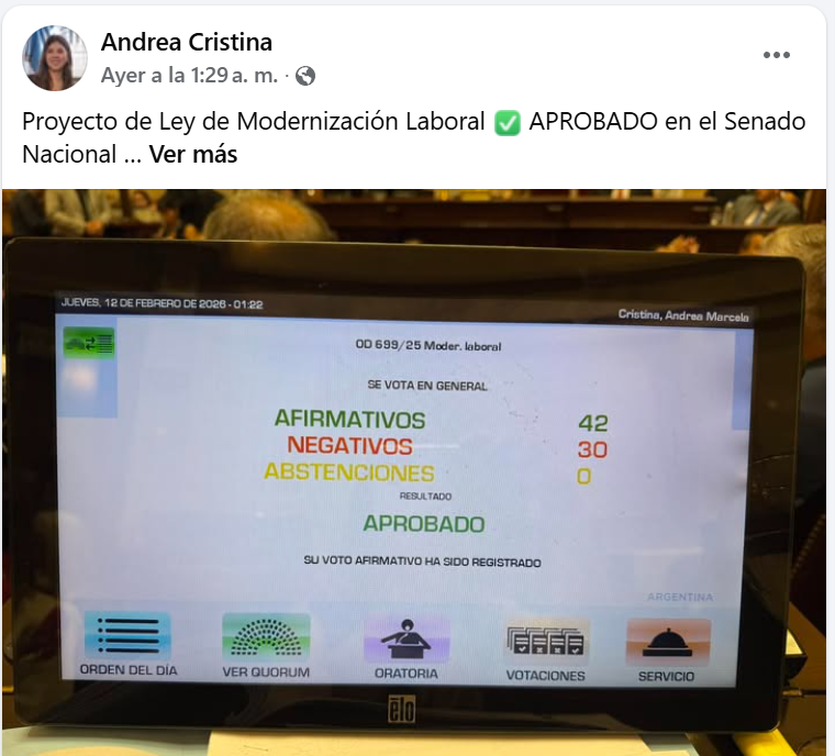 En definitiva, la reforma laboral no es sólo un conjunto de artículos técnicos sino una definición política sobre el lugar del trabajo en la Argentina que viene.