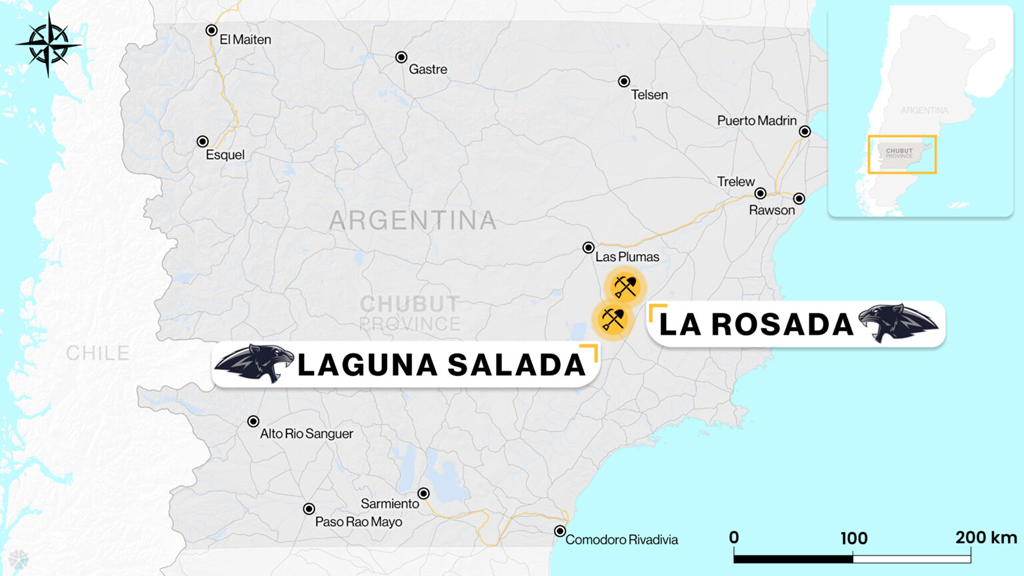 En Argentina, Jaguar concentra sus trabajos en la histórica mina Huemul y en el distrito Sierra Pintada, ambos en Mendoza. Pero también tiene serias intenciones en Chubut, en donde la empresa posee los activos Laguna Salada y La Rosada, que en conjunto cubren cerca de 300.000 hectáreas.