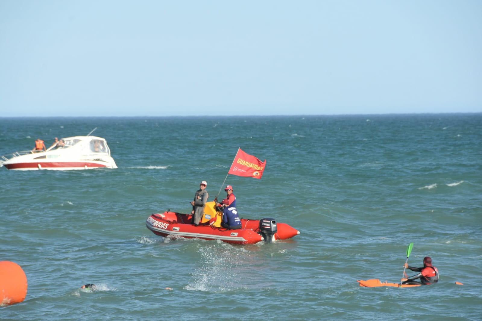 Sin embargo, la seguridad dentro y fuera del mar garantizada por el Cuerpo de Guardavidas de Playa Unión y el aporte de varios kayakistas permitió que la travesía transcurriera con normalidad, salvo porque un barco de la Flota Amarilla salió justo del Puerto cuando los atletas recién se habían introducidoal mar, en una clara distracción de Prefectura.