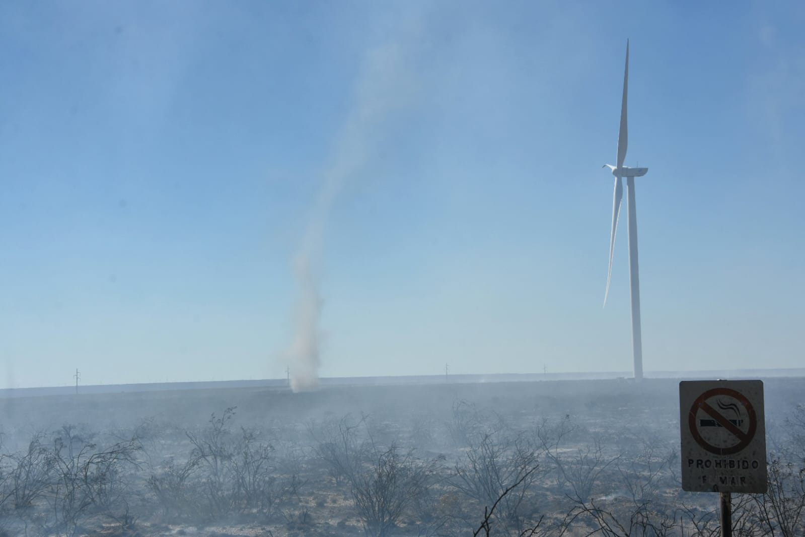 El siniestro de campos se desató este viernes pasado el mediodía en el sector donde se ubican los molinos eólicos. Se pide tener en cuenta la circulación de los coches de Bomberos Voluntarios, para no entorpecer su trabajo.