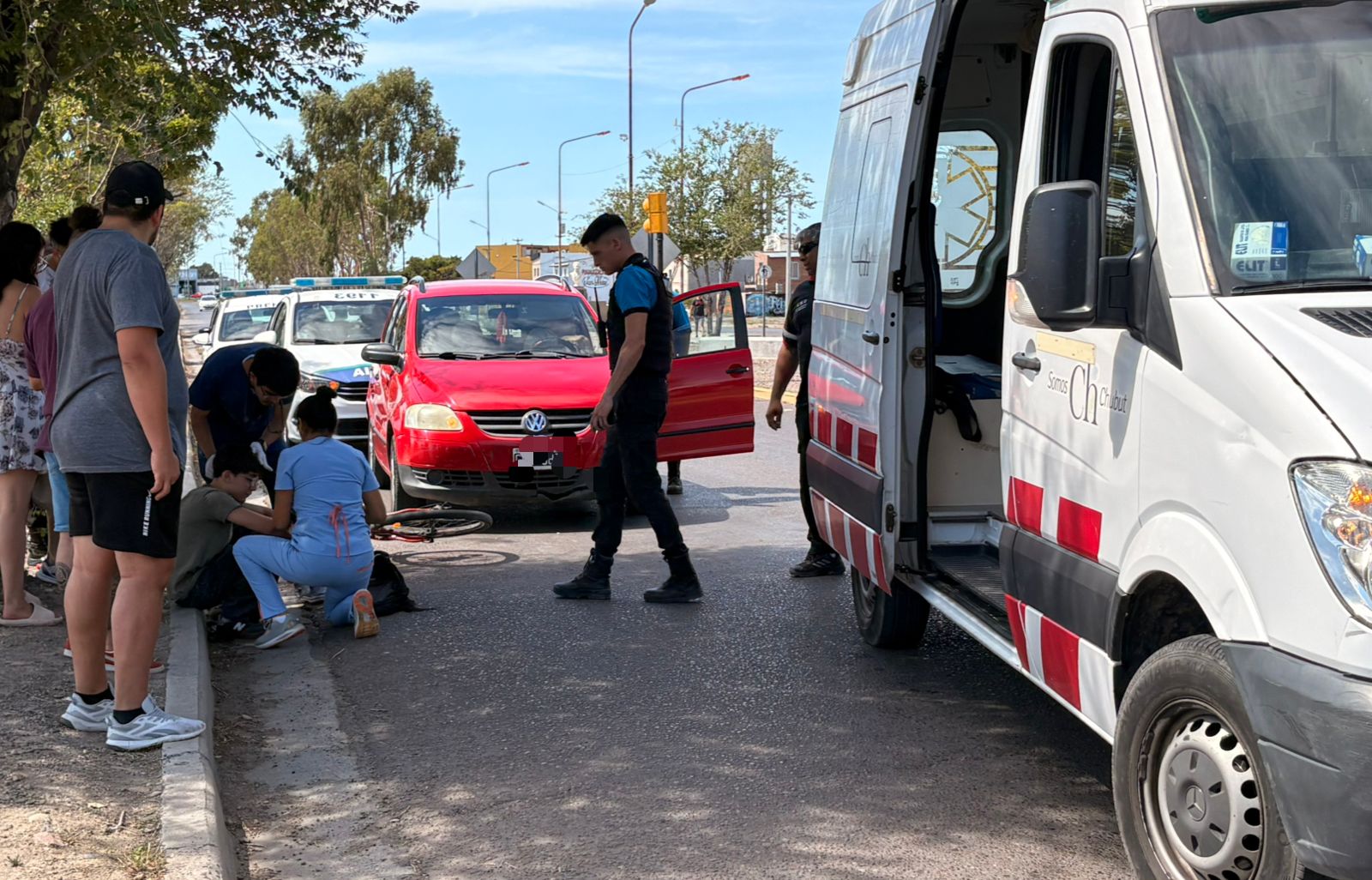 Este viernes al mediodía, un joven fue atropellado en la bicisenda de Salvador Allende de Trelew. Él salía de la Escuela secundaria N° 724 y debía cruzar en su bici, hacer unos metros y llegar a su casa. Fue atropellado por un Volkswagen Suran luego del badén que se encuentra en el lugar.