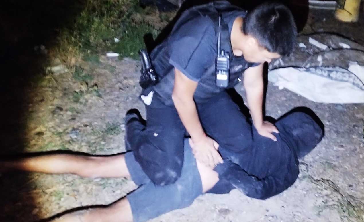 Este lunes, pero ahora en Comodoro Rivadavia cerca de la 01:15 h, personal policial de lña Comisaría Sexta que se encontraba realizando recorridas preventivas sobre calle Código 494 del Barrio San Cayetano, observaron a un vecino corriendo a un sujeto.