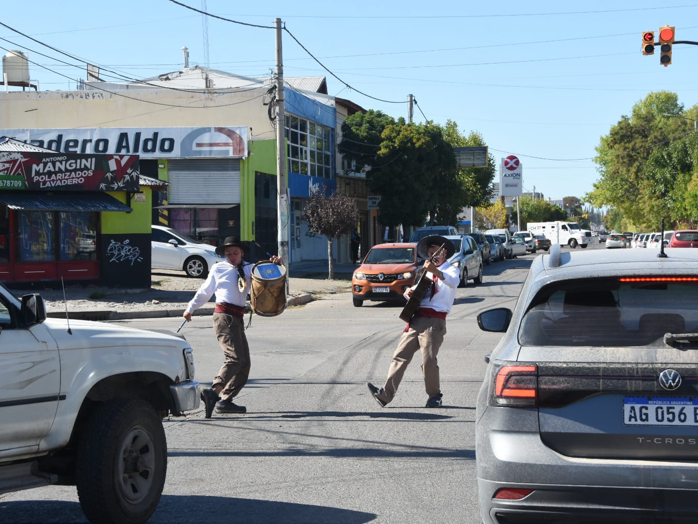 Hace seis meses, desde Mendoza llevan su arte a toda la Patagonia. Ahora, los “Trovadores 78” están en Trelew y llenan de folklore las esquinas. Son artistas callejeros y este viernes contaron su historia a Jornada. Si bien intentan ir de una ciudad a otra en colectivo, muchas veces quedaron varados en la ruta, pasando frío o calor, pero todo lo hacen para acercar su arte a las personas.