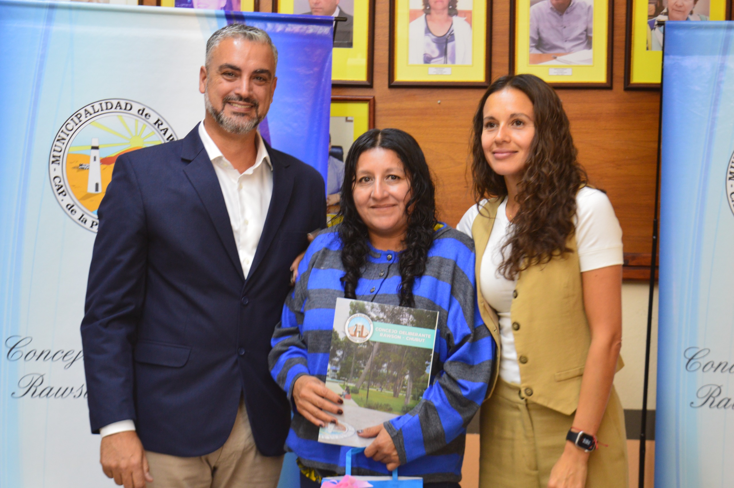 Los concejales German Gusella y Laura Tonso de Despertar Rawsense le entregaron su reconocimiento a la vecina Beatriz Salinas Peña.