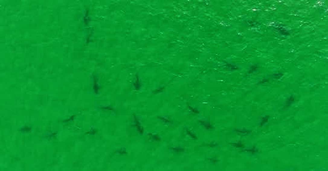 Las imágenes, obtenidas desde el aire,muestran una verdadera constelación de siluetas bajo el agua. Aunque la visibilidad no era total, se distinguen decenas de ejemplaresdesplazándose de manera coordinada. Cada uno de estos tiburones, de entre 2,5 y 3 metros de largo y un peso que puede rondar entre los 80 y 100 kilos, forma parte de una de las concentraciones más grandes registradas en la región.