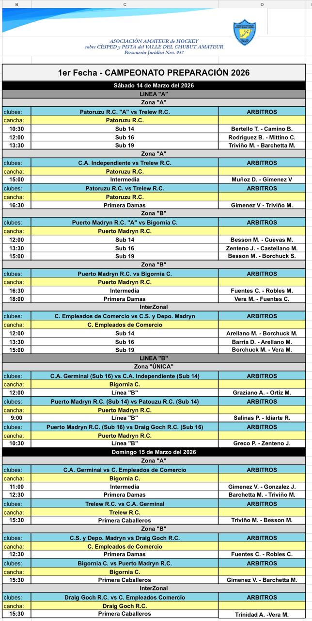 La Asociación de Hockey del Valle del Chubut, que desde esta temporada preside Justo Padín, pone en marcha su primer torneo del año a partir de este fin de semana.