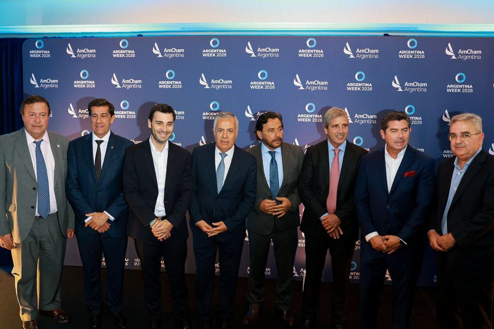 Del panel participaron también los gobernadores Rolando Figueroa (Neuquén), Alberto Weretilneck (Río Negro), Alfredo Cornejo (Mendoza) y Juan Pablo Valdés (Corrientes), ante un auditorio integrado por empresarios, fondos de inversión y representantes del sector financiero internacional.