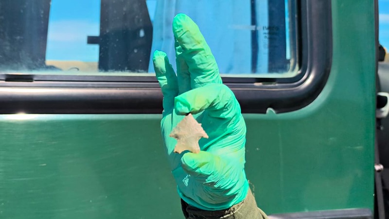 Según el parte de prensa del Ministerio de Seguridad, tras el registro los funcionarios identificaron a un ciudadano mayor de edad y detectaron que llevaba dentro de una mochila 24 puntas de flechas, similares a los que utilizaban los pueblos originarios para realizar actividades de caza, y una madera fosilizada.