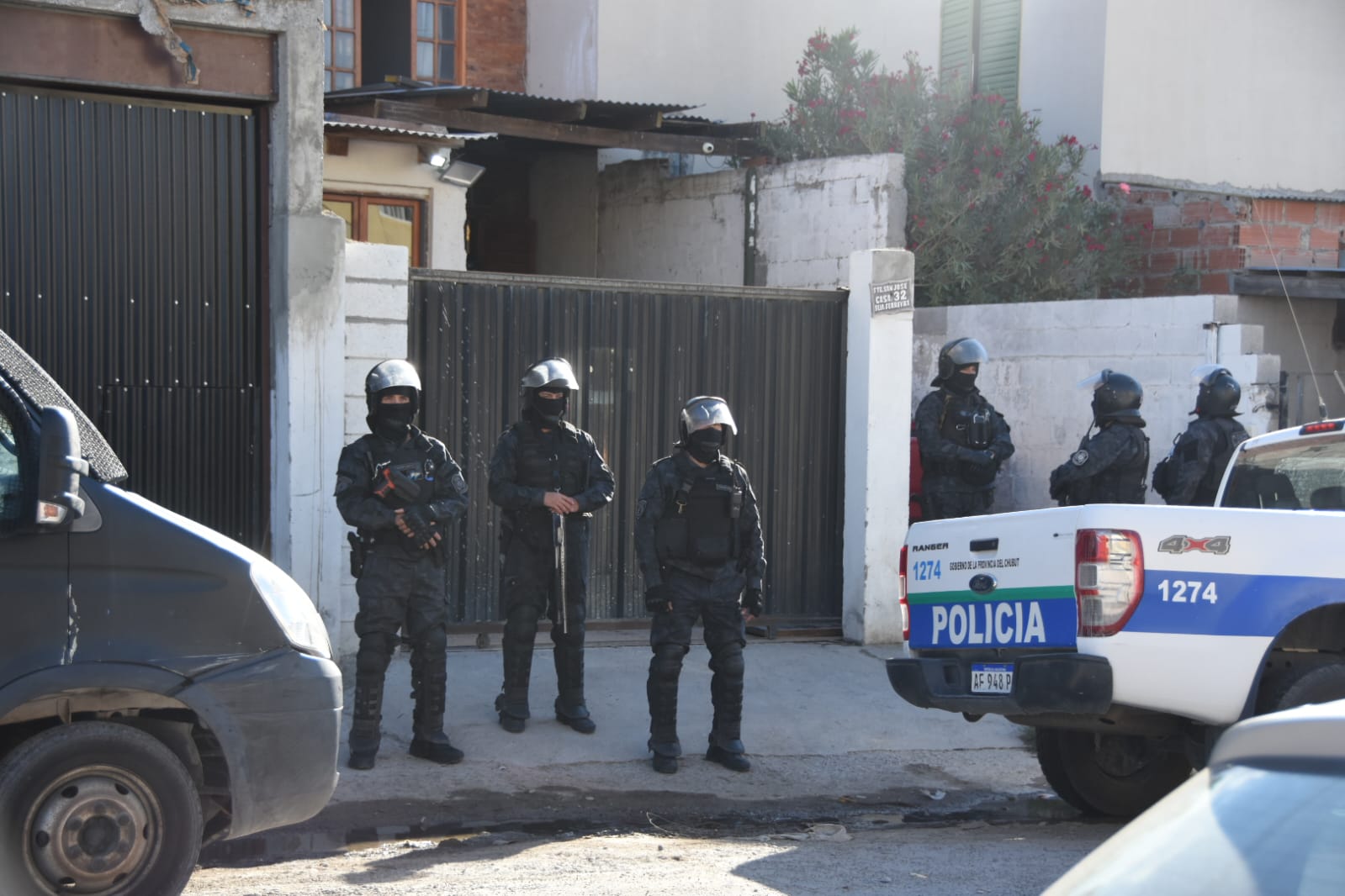 Personal de G.E.O.P. y brigada de investigaciones trabajan en el lugar. En representación de Fiscalía esta la funcionaria Verónica Alabart.