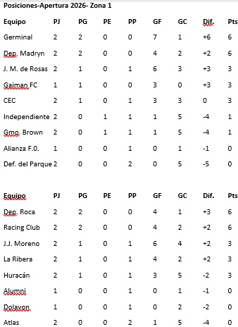 17.00 hs - Germinal vs. Juan Manuel de Rosas. Cancha: El Fortín.