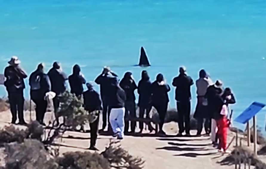 Este martes, en Punta Norte, se pudo ver la llegada de Jaluel, una orca macho emblemática de los investigadores, de aproximadamente 26 y 27 años, y reconocida en la costa de Chubut, cada temporada por su enorme aleta dorsal y su avistaje en Punta Norte y Península Valdés.